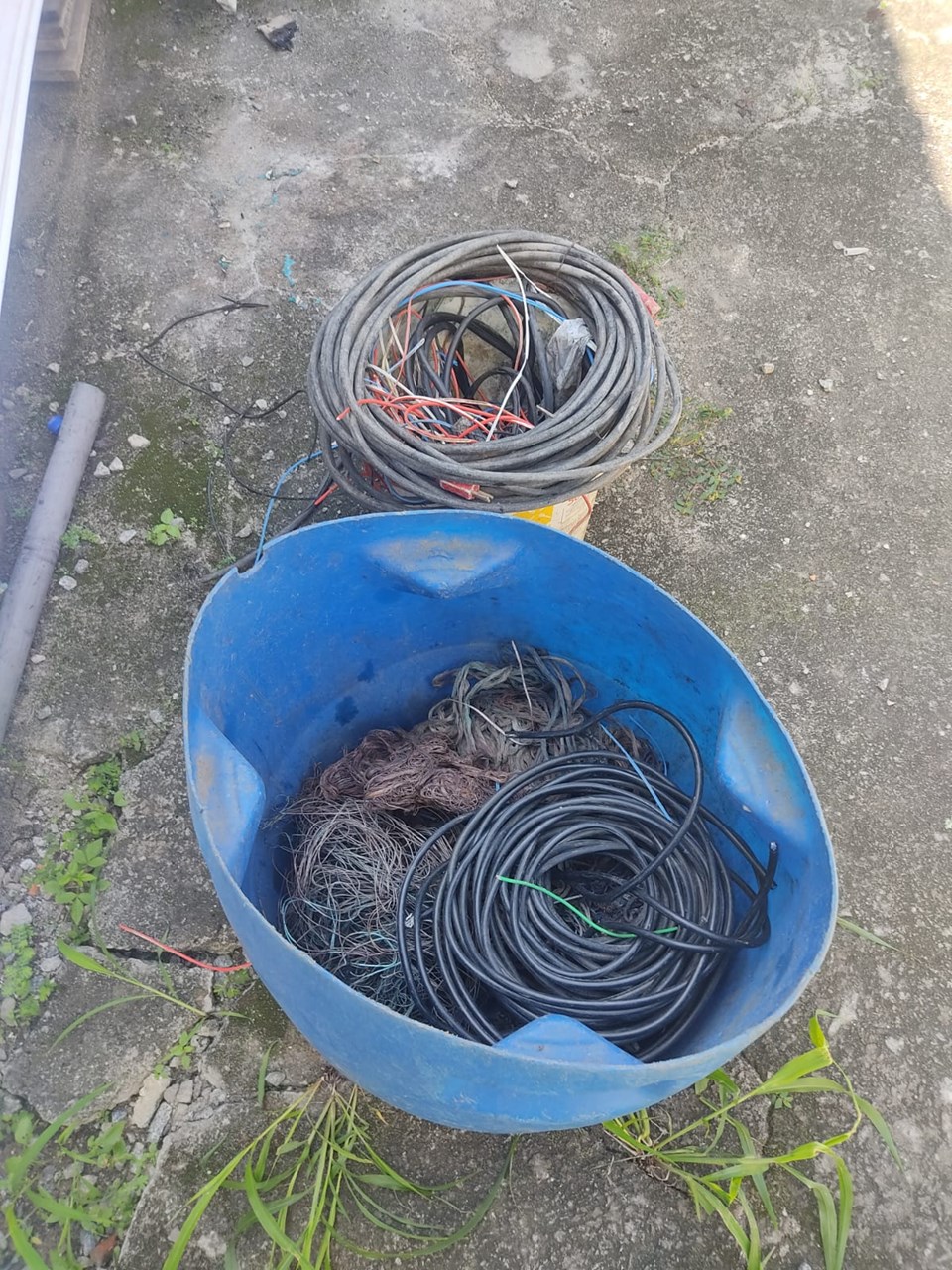 Durante as diligências, foram encontrados e apreendidos dois tonéis contendo fios descascados e outros ainda intactos e parte do material subtraído de uma igreja. O dono do estabelecimento disse que não sabia de quem havia comprado o material.