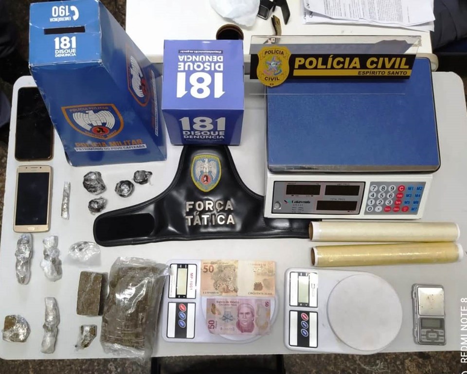 Com as descrições contidas em referido caderno, os policiais prosseguiram em diligências em uma casa no Bairro Direção, em Fundão e outra no Bairro Guanabara, em Aracruz, apreendendo mais drogas e balanças de precisão, bem como realizando a prisão dos moradores. Ao todo, durante a operação, policiais apreenderam 307 gramas de maconha, 77 gramas de haxixe, quatro balanças de precisão e dois celulares.