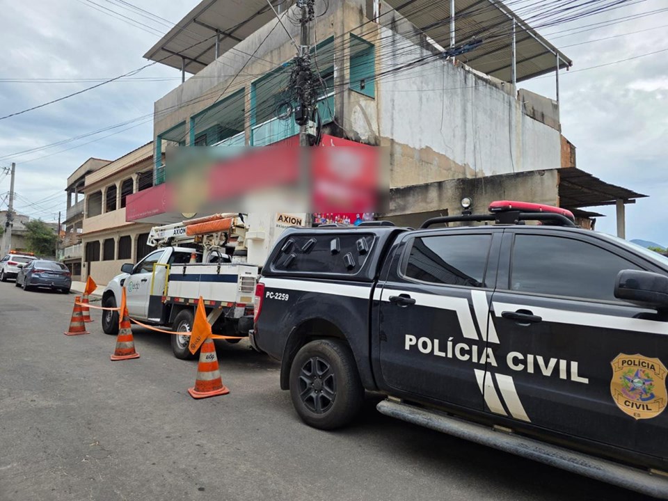 No local, o perito do Departamento de Engenharia Forense do Instituto de Criminalística (IC) da Polícia Científica do Espírito Santo (PCIES), constatou uma ligação direta trifásica na rede de energia, sem medição para registro de consumo ou faturamento. A ligação irregular alimentava tanto o estabelecimento comercial quanto a residência localizada no piso superior. Durante a perícia, verificou-se que havia fluxo de corrente na ligação direta.