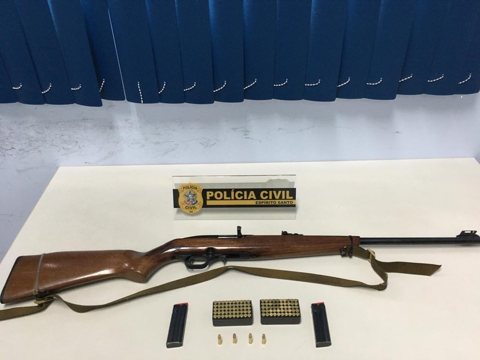 Entre as medidas deferidas, constava a suspensão da posse de arma de fogo. Em cumprimento à determinação judicial, a equipe policial se deslocou até o sítio do investigado, onde foi realizada a apreensão de um rifle, que estava com bandoleira improvisada, além de munições calibre .22.