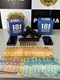 Durante o cumprimento de mandados, as equipes do Denarc apreenderam na residência de um suspeito, de 29 anos, os seguintes materiais: uma pistola calibre 9mm de fabricação israelense, com numeração suprimida; 36 munições calibre 9mm; um carregador sobressalente alongado; R$ 1.095,00 em espécie; e dois aparelhos celulares.