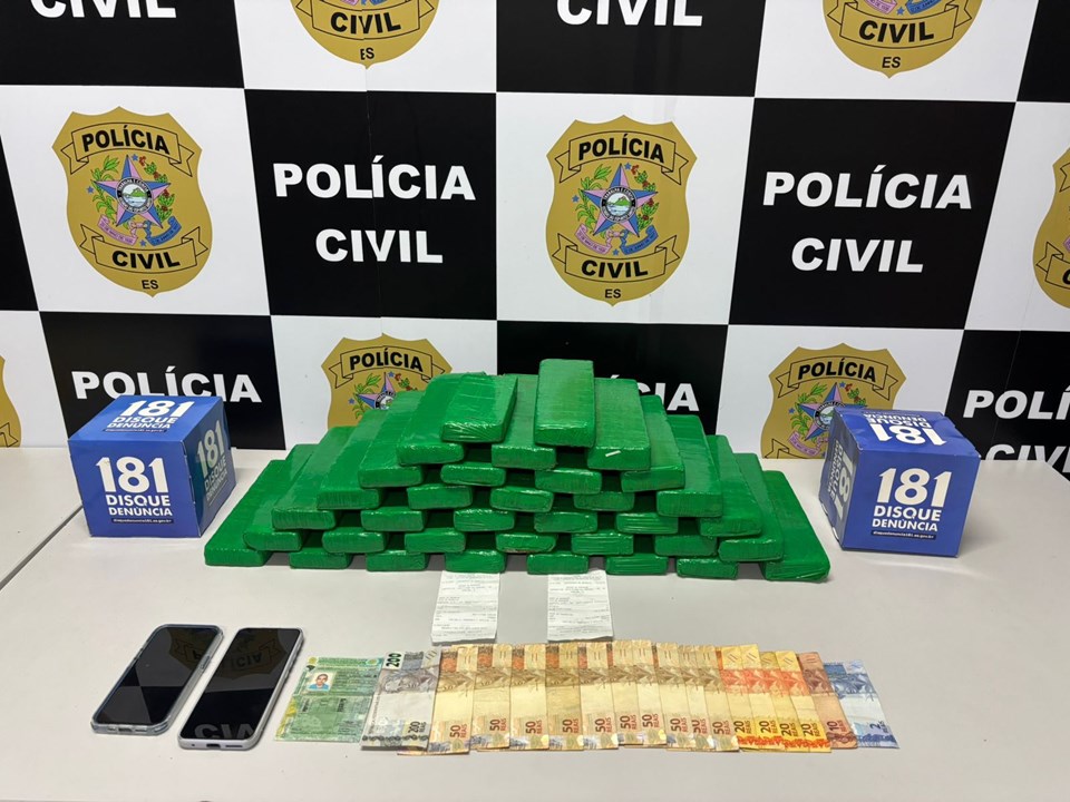 A Polícia Civil do Espírito Santo (PCES), por meio do Departamento Especializado de Narcóticos (Denarc), realizou, nessa segunda-feira (17), uma ação de combate ao tráfico interestadual de drogas no município de Cariacica. A operação resultou na apreensão de uma carga de entorpecentes que havia chegado de Cascavel, no Paraná, e na prisão em flagrante de dois indivíduos, de 30 e 52 anos, responsáveis pelo transporte e pelo recebimento do material ilícito.