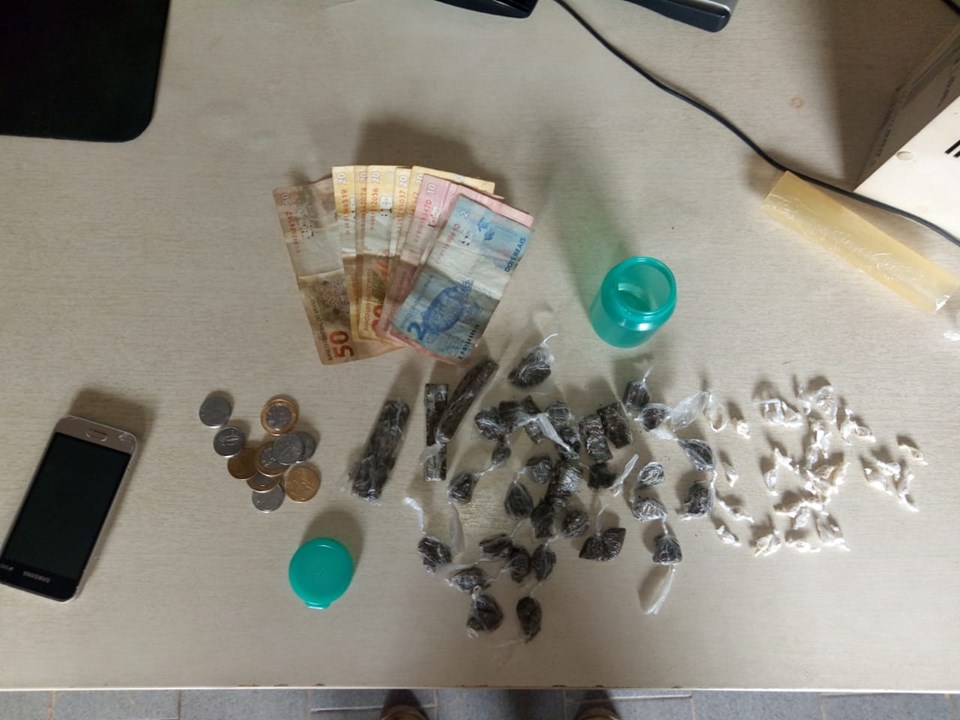 “Inicialmente tínhamos um mandado de busca e apreensão para a residência do irmão do detido. Quando chegamos ao local, o jovem de 18 anos foi visto em atitude suspeita na calçada em frente à casa do alvo inicial. Ele tentou se livrar de um pote que estava com ele, mas a equipe o abordou e apreendeu 36 pedras de crack, algumas buchas de maconha, além de R$ 188,00, em espécie, e um celular”, disse o titular da DP, delegado Antônio de Oliveira Pinto.