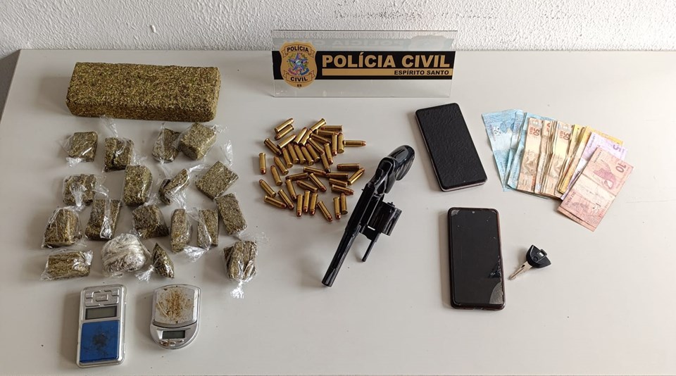 As diligências foram realizadas em um imóvel localizado no bairro Itacibá, no município de Cariacica. Durante a operação, o suspeito foi detido e foram apreendidos uma arma de fogo carregada, munições, entorpecentes, dinheiro em espécie e uma motocicleta utilizada, em tese, para a prática das atividades ilícitas.