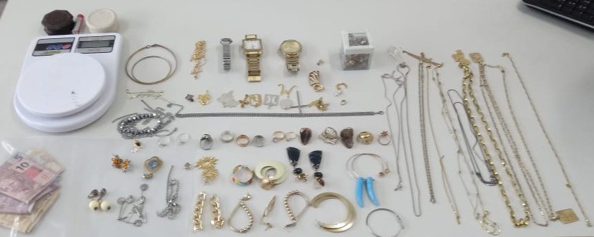 Ainda segundo o responsável pelo caso, os policiais recuperaram parte do material roubado. “Com o jovem conseguimos apreender parte das joias e da quantia em dinheiro que foi subtraída, além de um dos aparelhos celulares roubados. Ele já possui outras passagens pela polícia por crimes de tráfico de drogas, porte ilegal de arma de fogo e receptação. Agora, ele responderá pelo crime de roubo duplamente majorado”, afirmou.
