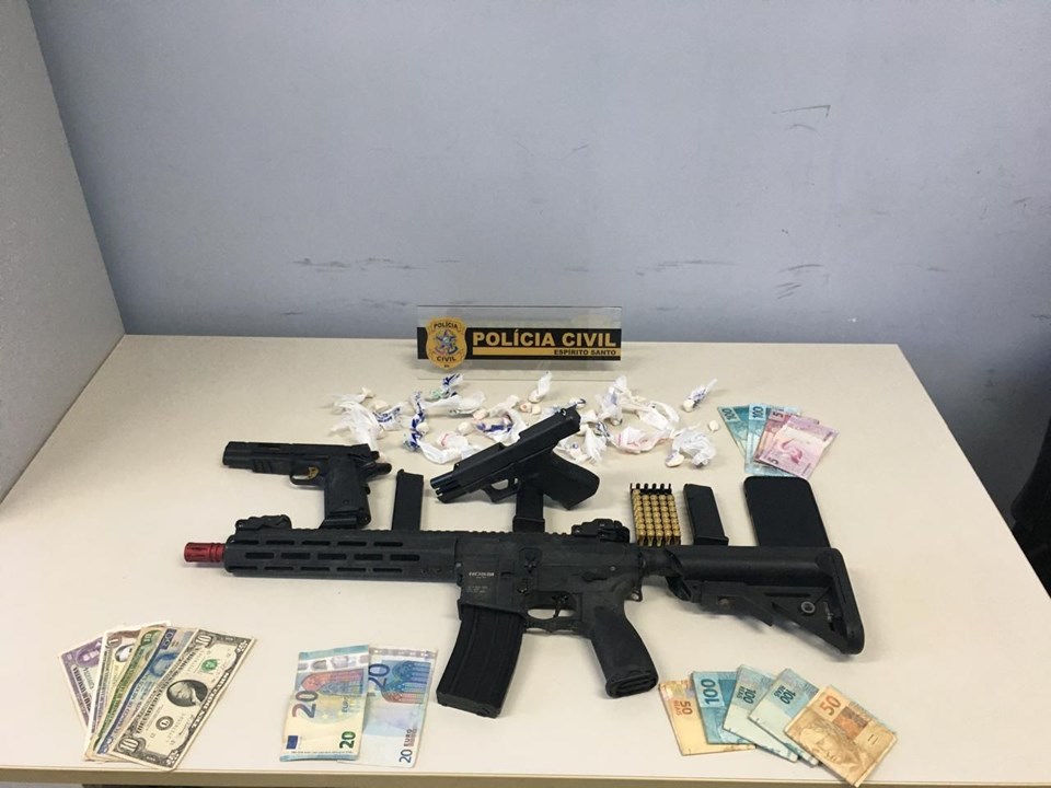 As equipes realizaram diligências no bairro João Ferraz e realizaram cerco em um imóvel. O investigado de 32 anos foi preso. Nas buscas, foram apreendidas 30 buchas de cocaína e uma réplica de fuzil AR 15. Já no segundo andar da residência, foram localizadas uma pistola calibre 380 e 50 munições calibre 9mm, além de R$ 4.150,00 em espécie e outros elementos de prova relativos à investigação do crime de homicídio.
