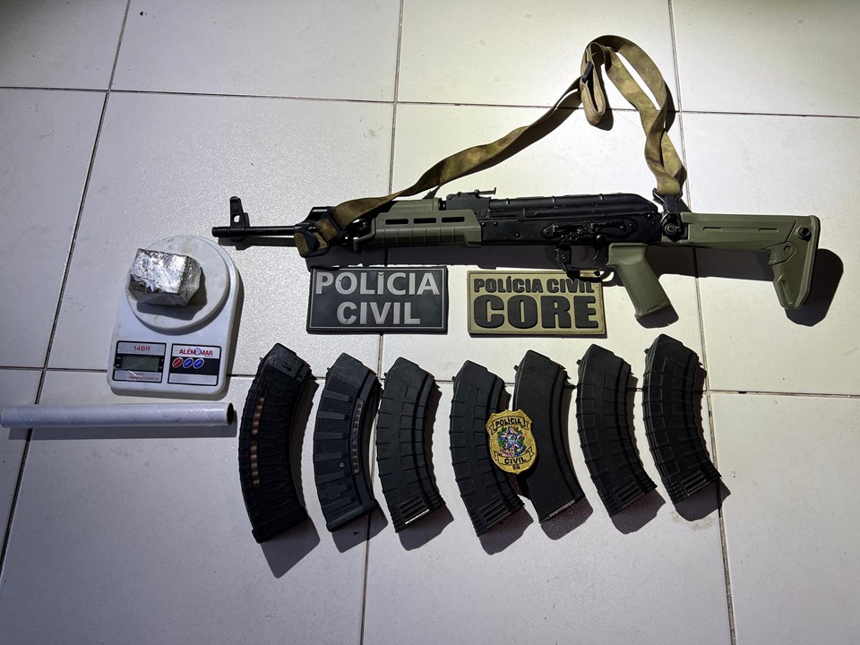 De acordo com as investigações, o criminoso estava no Estado do Rio de Janeiro e havia voltado para o Estado capixaba na semana passada. Por meio de diligências, o chefe da quadrilha foi localizado e preso em uma residência alugada, no bairro Nova Palestina. No imóvel, foram apreendidos um fuzil AK-47 calibre.762, uma arma russa, além de carregadores e munições.