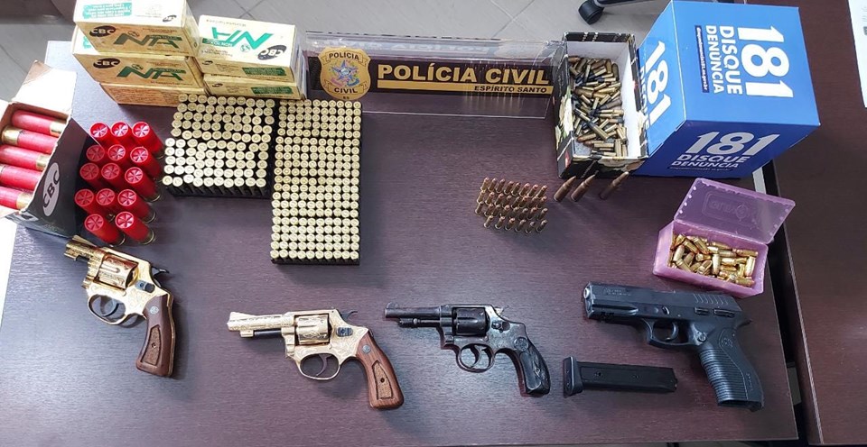 Um homem de 28 anos foi preso durante uma operação policial da Delegacia Especializada de Narcóticos (Denarc) e da Delegacia de Homicídios e Proteção a Pessoas (DHPP) de Linhares, na manhã desta segunda-feira (07), no bairro Três Barras, no mesmo município. Durante a ação, foram apreendidos dois revólveres calibre. 32; uma pistola calibre. 380 e 354 munições de diferentes calibres.