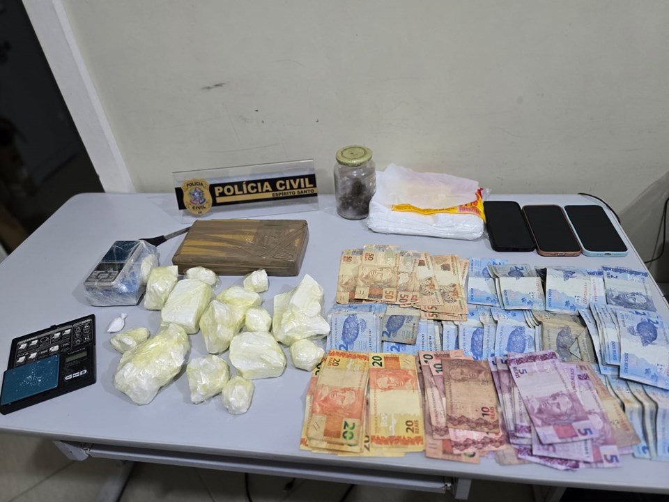 Na quarta-feira (15), policiais civis da Delegacia Especializada em Narcóticos (Denarc) e da Delegacia Especializada em Homicídios e Proteção à Pessoa (DHPP) de Linhares deflagraram uma operação com o objetivo de combater o tráfico de drogas na região de Palmital. A ação resultou na prisão de um homem de 28 anos e na apreensão de drogas, dinheiro e uma balança de precisão.