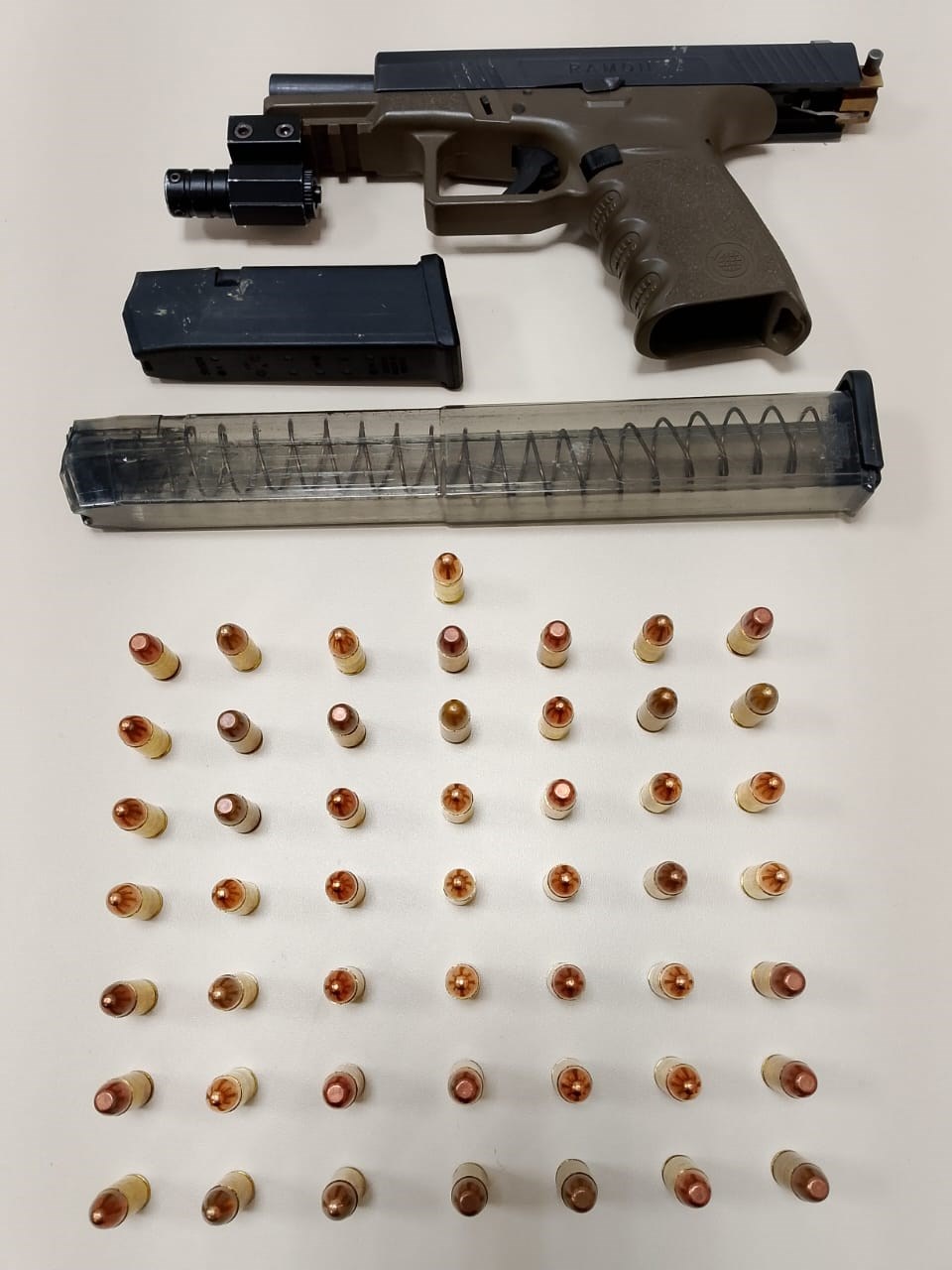 Durante a operação, foi apreendida uma pistola calibre 9mm equipada com seletor de rajada e mira laser, além de dois carregadores (sendo um alongado), 50 munições intactas calibre 9mm e cargas de substância similar à maconha.