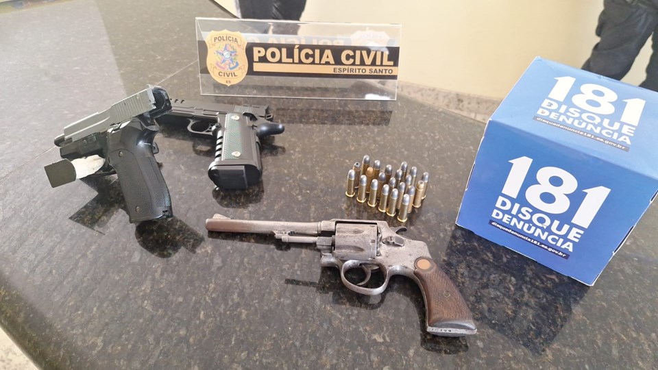 Nas buscas, foram apreendidos um revólver calibre .38, 22 munições do mesmo calibre e dois simulacros de pistola. Diante dos fatos, o suspeito foi conduzido à Delegacia Regional de Linhares, onde foi autuado em flagrante pelo crime de posse ilegal de arma de fogo e munições.