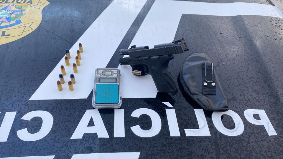 No imóvel, os policiais apreenderam uma pistola calibre .380, com 15 munições, além de outras 11 munições calibre 9mm, uma balança de precisão e cinco smartphones. Também foram encontrados R$ 685,00 em notas de diferentes valores e R$ 224,00 em moedas.
