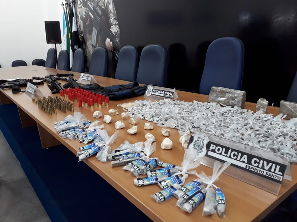 Durante a ação, a polícia apreendeu 49 munições de calibre 5.56, uma pistola .40 com 17 munições, uma pistola 765mm, um carregador, duas espingardas calibre 12 e 41 munições da referida arma, um silenciador, uma capa de colete, 1065 buchas e 1,4kg de maconha, 14 pedras de crack, quatro balanças de precisão, um micro-ondas para preparo de entorpecentes, um rádio comunicador e diversos materiais para embalo de droga.