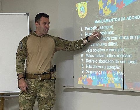 Durante a instrução, foram abordadas as principais características que a pessoa com autismo apresenta e como ela poderá responder durante uma abordagem policial, para evitar comprometer ao nível de segurança da equipe e dela mesma.