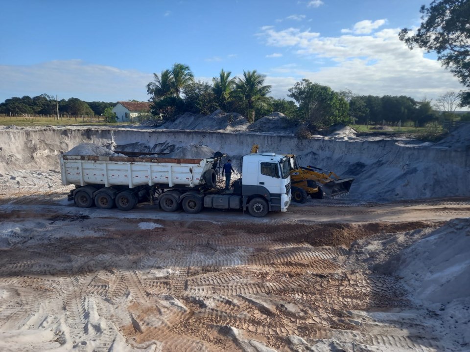 As equipes se deslocaram ao local após o recebimento de uma denúncia anônima sobre extração ilegal de recursos minerais. No ponto indicado, as equipes constataram a existência de uma intervenção em andamento, com uma máquina escavadeira realizando o carregamento de areia em uma carreta tipo caçamba.