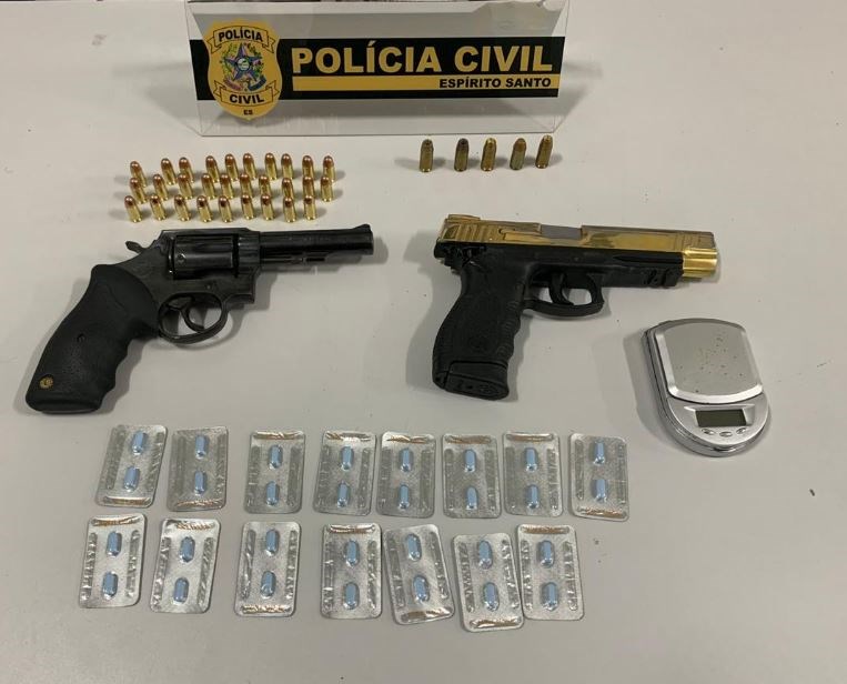O delegado do Denarc, delegado Diego Bermond, responsável pelas investigações, informou que foram apreendidas, na casa do detido de 30 anos, um revólver.38, subtraído de uma empresa de segurança; uma pistola.40; 29 munições calibre 380 e cinco munições calibre .40. Com o detido P.C.D. foram apreendidos 30 comprimidos de citrato de sildenafila e um veículo com compartimentos específicos para o tráfico de drogas, que está em nome do detido de 22 anos, utilizado para o transporte dos ilícitos.