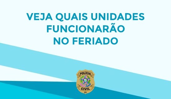 Em razão do ponto facultativo decretado pelo Governo do Estado, em alusão à festividade religiosa de Corpus Christi, nestas quinta-feira (08) e sexta-feira (09), algumas unidades da Polícia Civil do Espírito Santo funcionarão em horário diferenciado.