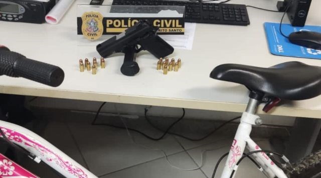 Na tarde dessa segunda-feira (20), no bairro Santa Tereza, em Vitória, equipes do Departamento Estadual de Investigação Criminal (Deic) prenderam um homem de 20 anos e apreenderam um adolescente de 17 anos, além de recuperar uma bicicleta e um aparelho celular com restrição de roubo. Com o adolescente foi encontrada uma pistola calibre.40 municiada e raspada.