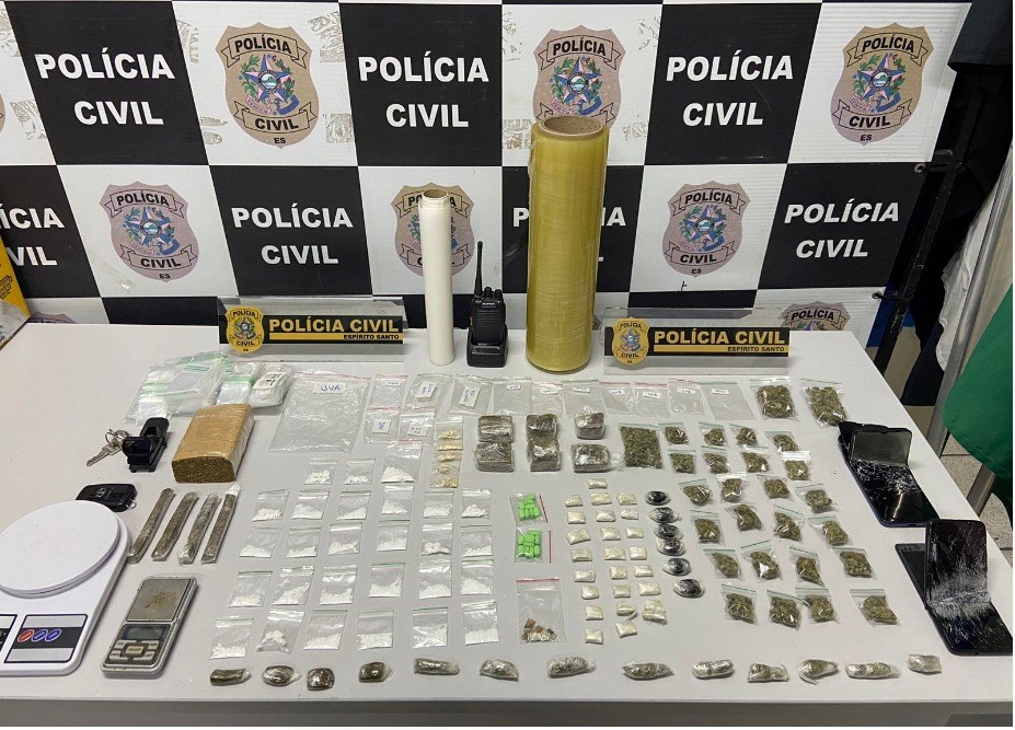 “Quando os policiais chegaram, o suspeito se trancou no carro e quebrou dois celulares. A equipe realizou buscas e encontrou uma bolsa contendo drogas. O investigado então levou os policiais até a casa dele, no bairro Jockey, também em Vila Velha, onde as buscas continuaram”, relatou delegado Tarcísio Otoni.
