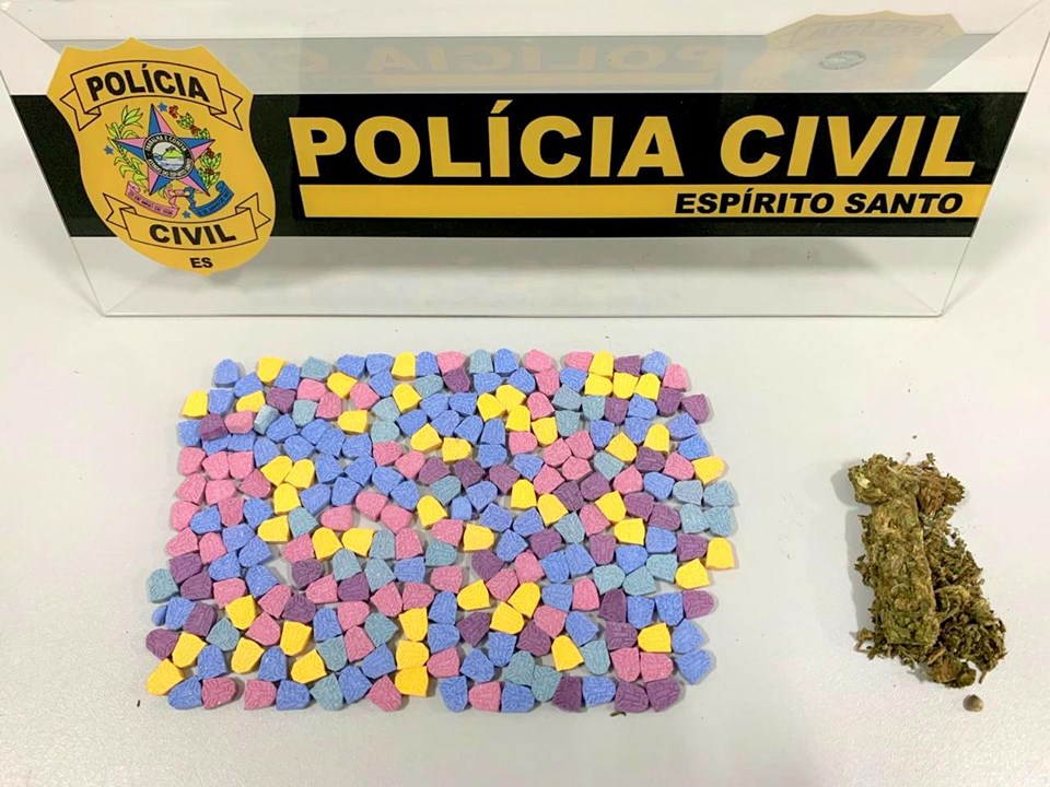 “A denúncia informava que haveria uma entrega de comprimidos de ecstasy em um supermercado no município de Vila Velha. Diante desta informação, os policiais civis se deslocaram até o local e abordaram um adolescente de 17 anos. Ele portava 200 comprimidos e informou aos policiais civis que estava ali a mando de outra pessoa”, explicou o titular da Denarc, delegado Diego Bermond.