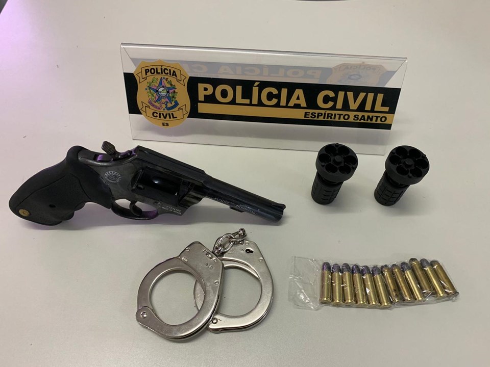 Também foi cumprido um mandado de busca e apreensão na residência de A. G. B., 27 anos. No local, os policiais encontraram um revólver calibre .38, carregadores e munições. O alvo da busca foi autuado em flagrante por posse ilegal de arma de fogo e receptação. Os dois suspeitos foram encaminhado para o Centro de Triagem de Viana (CTV).