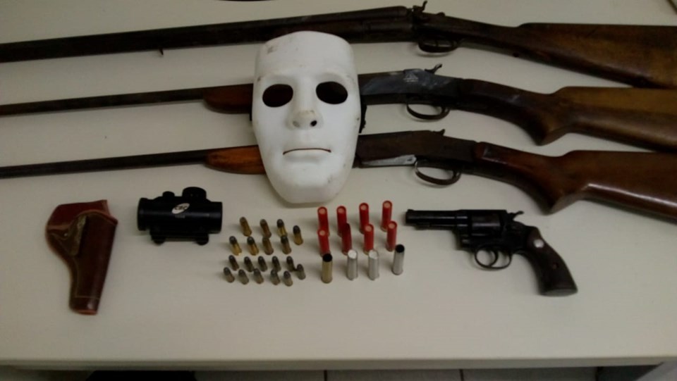 Na casa de M. M. N., de 29 anos, os policiais cumpriram mandados de busca e apreensão e apreenderam três espingardas, uma mira a laser, um revólver calibre 32, munições – inclusive de fabricação caseira – e uma máscara. “As armas que serão encaminhadas para a perícia para verificar se alguma foi usada no crime. Além do homicídio, ele também foi autuado em flagrante pela posse ilegal das armas”, disse Gianno.