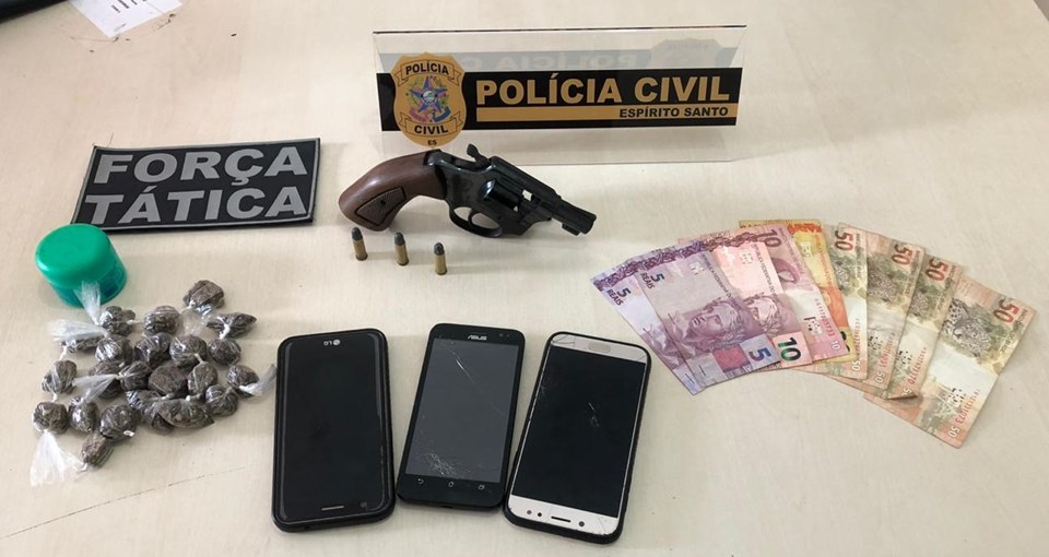 Durante a operação, os policiais apreenderam na casa do irmão mais novo um revólver calibre .32, com numeração raspada, bem como munições de mesmo calibre, 22 buchas de maconha, R$ 250, em espécie e diversos telefones celulares. “Assim que chegamos para cumprir o mandado de prisão e os mandados de busca e apreensão na residência, identificamos que os pais dos detidos, de 45 e 46 anos, também participavam do esquema de tráfico de drogas realizado pelos irmãos”, afirmou o titular da DP de Montanha, delegado Leonardo Ávila.
