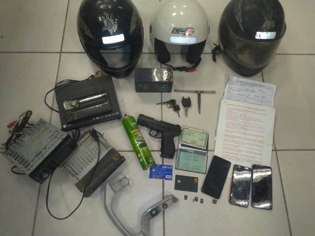 Ao todo, foram apreendidas diversas peças de motocicleta – como motor, retrovisor, ignição, freio, rodas etc. –, ferramentas para desmanche de motocicletas, chaves micha, uma motocicleta YBR125 com restrição de roubo, além de quatro simulacros de arma de fogo, diversos capacetes, 71 munições calibre .22, 39 munições calibre .36, nove munições calibre .38. Também foram apreendidos diversos aparelhos de telefone celular, placas veiculares, computador e notebook. Um dos investigados foi preso em flagrante por posse de munições de diversos calibres e encaminhado ao sistema prisional.