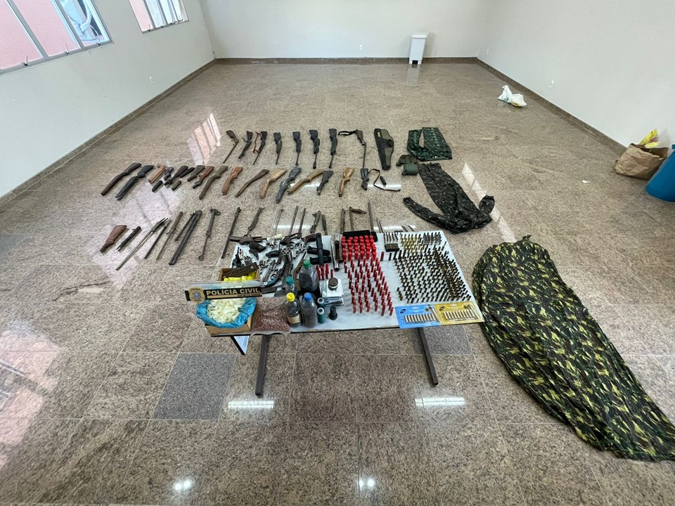 Foram apreendidas 7 armas longas montadas; 1 garrucha; 3 armas longas de pressão; 15 coronhas de espingarda. A equipe também encontrou 17 canos de espingarda; 4 revólveres; 1 simulacro de pistola; diversas munições e estojos de vários calibres; diversos materiais para recarga de munição e maquinário utilizado na fabricação de armas e munições. Apesar do farto material, o investigado alegou ter uma oficina, negando a atividade clandestina.