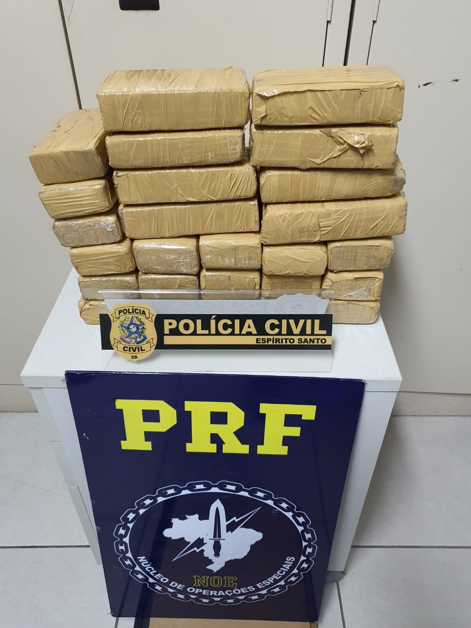 Nesta quinta-feira (07), uma operação conjunta entre a equipe da Divisão Especializada em Repressão aos Crimes Contra o Patrimônio (DRCCP) e a Polícia Rodoviária Federal (PRF) prendeu, em flagrante, um suspeito de tráfico de drogas interestadual. O suspeito de 29 anos foi autuado em um posto de gasolina, em Venda Nova do Imigrante, transportando cerca de 22kg de maconha.