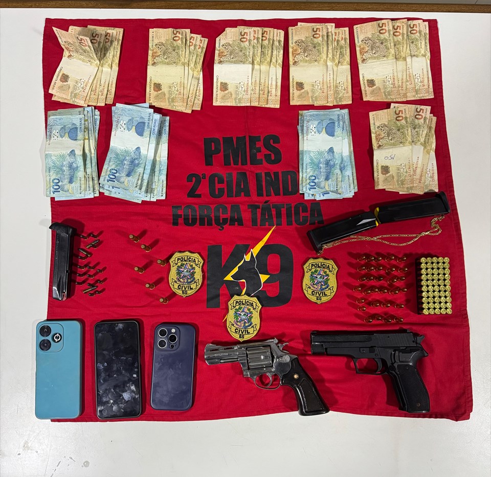 Ao todo, foram cumpridos cinco mandados de prisão preventiva e dez mandados de busca e apreensão. Durante a operação, foram apreendidos um revólver calibre .38 e cerca de 200 munições.