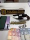 Durante as diligências, dois suspeitos, sendo uma mulher de 27 anos e um homem de 21 anos, foram detidos em uma residência. No local foram apreendidos um revólver calibre .32, acompanhado de 19 munições do mesmo calibre, além de porções de maconha prontas para comercialização e aparelhos celulares. Nas buscas neste endereço, um terceiro indivíduo conseguiu fugir e não foi localizado.