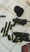 Dentro da casa, foram apreendidas duas submetralhadoras calibre 9 milímetros, além de sete munições do mesmo calibre, dois carregadores de submetralhadoras com capacidade para 30 munições, sete carregadores de pistola 9 milímetros, duas toucas ninjas, R$ 2.855,00 em espécie e uma mala com 56 peças de roupas novas para revenda.
