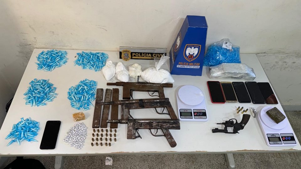 Durante a operação, foram apreendidos um revólver calibre 32 e cinco munições de mesmo calibre; três submetralhadoras artesanais calibre 9mm e 23 munições de mesmo calibre; dois quilos de substância análoga à cocaína, 1,1 quilos de substância análoga à maconha, 139 pedras de substância análoga à crack, além de balanças e material para embalo de entorpecentes.