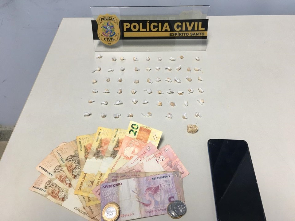 Dentro da casa, os policiais encontraram um envelope contendo 55 pedras de crack prontas para venda, uma pedra maior da mesma substância e a quantia de R$ 240,00 em espécie.