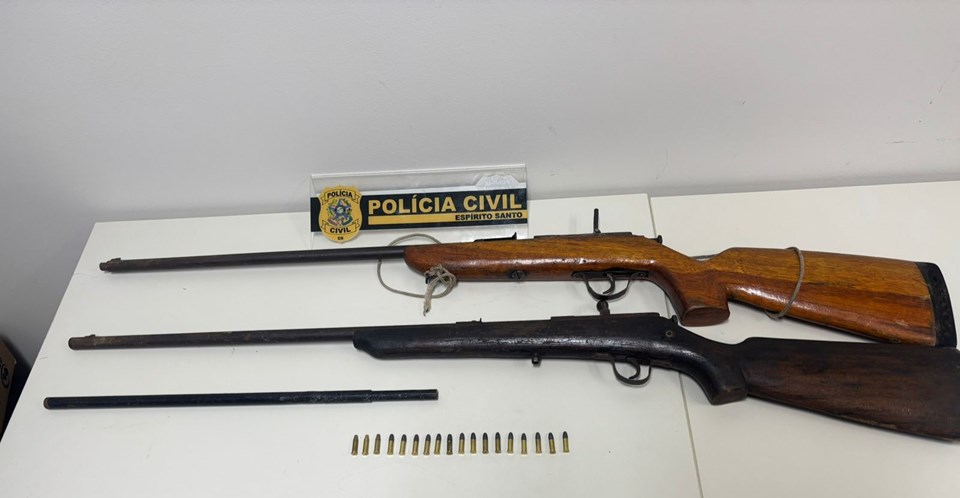 No local indicado, os policiais localizaram duas espingardas de calibre .22, 18 munições intactas do mesmo calibre e um cano de arma de calibre a ser definido. Diante dos fatos, foi dada voz de prisão ao suspeito, que foi conduzido à Delegacia de Polícia (DP) de Jaguaré e autuado em flagrante por posse irregular de arma de fogo.