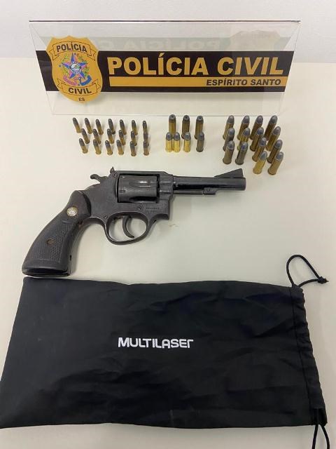A Polícia Civil do Espírito Santo (PCES), por meio da Delegacia de Polícia de Jaguaré, cumpriu um mandado de busca e apreensão em desfavor de um homem de 71 anos, suspeito de cometer crimes relacionados à lei Maria da Penha. Com ele, foram encontrados um revólver calibre 38 e 42 munições de calibres variados. A ação foi efetuada na localidade de Córrego Paraíso, em Vila Valério.