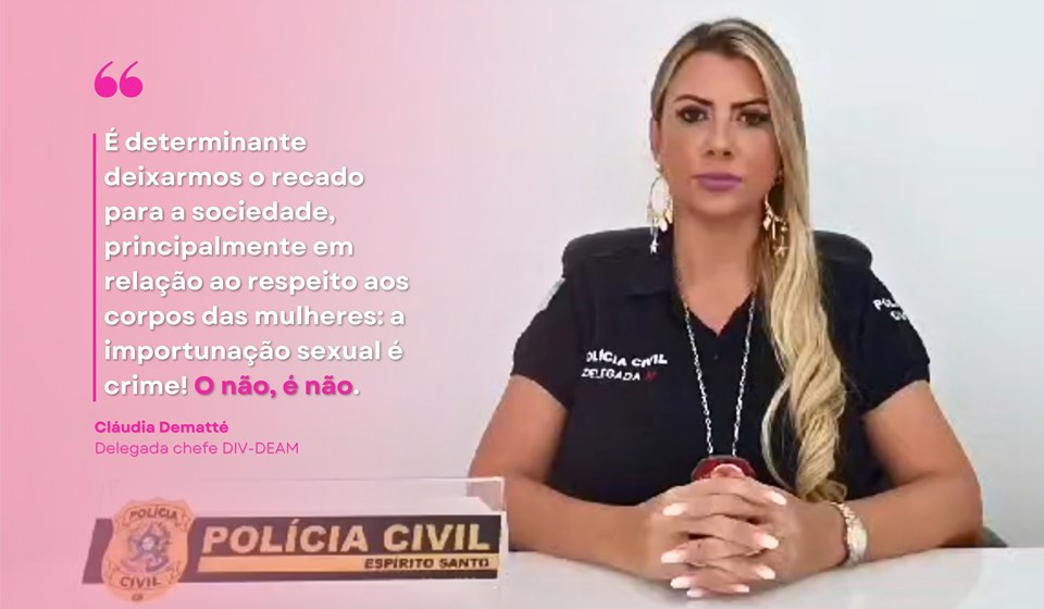 A frase tem sido repetida nos últimos carnavais e é sempre atual: "NÃO É NÃO!". Em tempos de folia, é necessário lembrar que aquilo que não é divertido para todo mundo, não deve ser encarado como brincadeira, nem paquera. A Divisão Especializada de Atendimento à Mulher (DIV-Deam), da Polícia Civil do Espírito Santo (PCES), aproveita a data mais festiva do ano para esclarecer que a importunação sexual é crime e que o corpo, a liberdade e a dignidade sexual da mulher devem ser respeitados, não só no Carnaval, mas em todos os dias do ano.