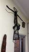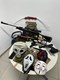 Durante o cumprimento da busca, foram apreendidas na residência do adolescente, armas de pressão, facas, mochilas táticas e uma besta. No local, também foi localizada uma arma de fogo que é pertencente ao pai do investigado, sem o devido registro. Diante do fato, a equipe deu voz de prisão em flagrante delito ao pai do adolescente pelo crime de posse irregular de arma de fogo. O homem foi conduzido à delegacia para as providências de praxe.