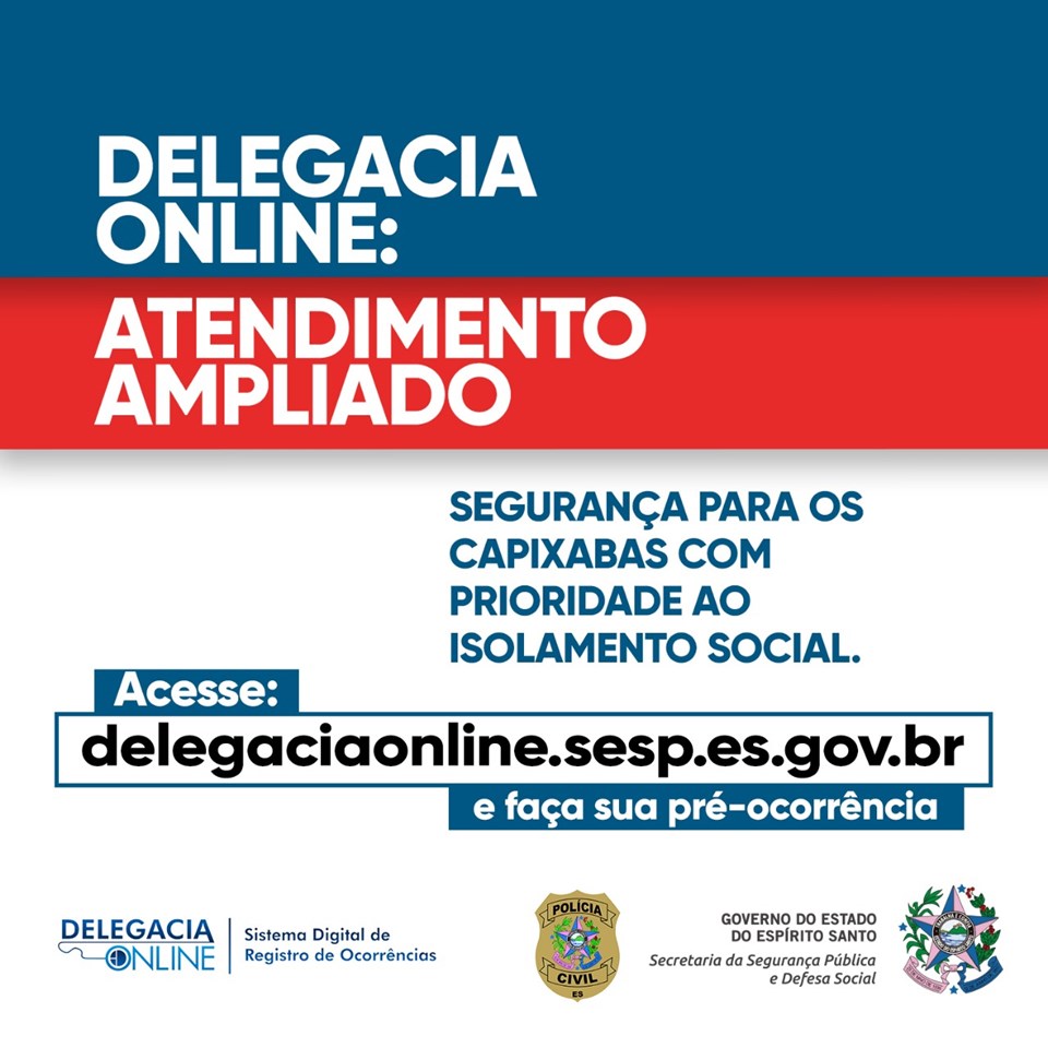 A Polícia Civil do Espírito Santo tem adotado medidas de segurança para policiais e cidadãos, neste período de restrição, devido à pandemia do novo Coronavírus (Covid-19). Uma das ações é a ampliação do leque de ocorrências que podem ser registradas por meio da Delegacia Online.