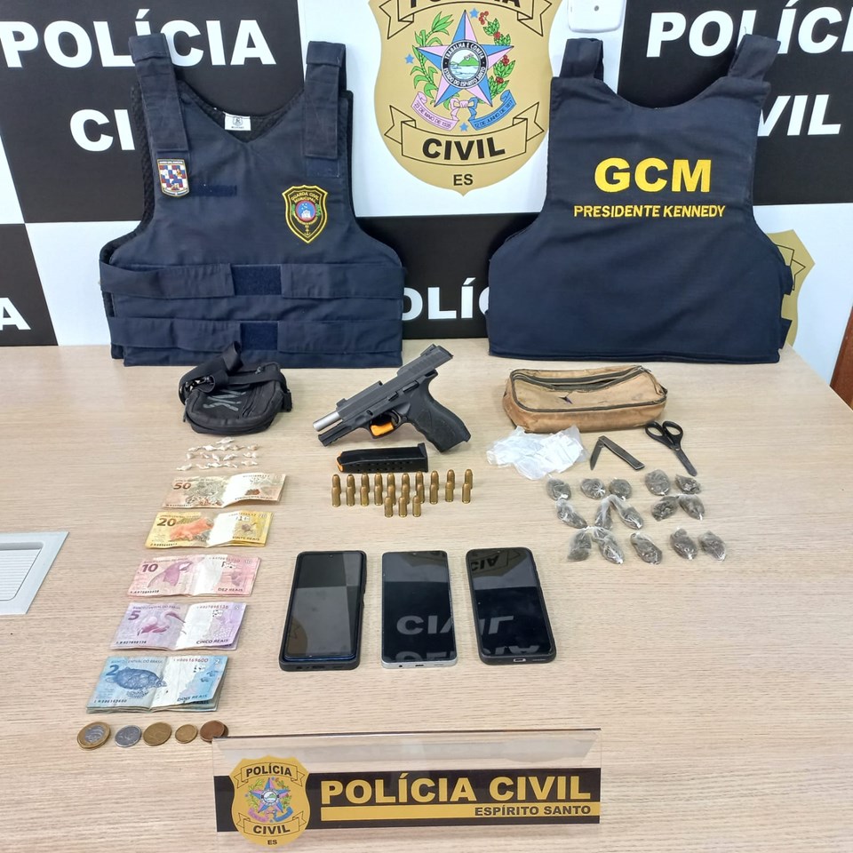 A Polícia Civil do Espírito Santo (PCES), por meio da Delegacia de Polícia (DP) de Presidente Kennedy e com apoio da Guarda Civil Municipal de Presidente Kennedy, prendeu, nessa terça-feira (11), dois suspeitos, de 30 e 39 anos, no Centro do município.