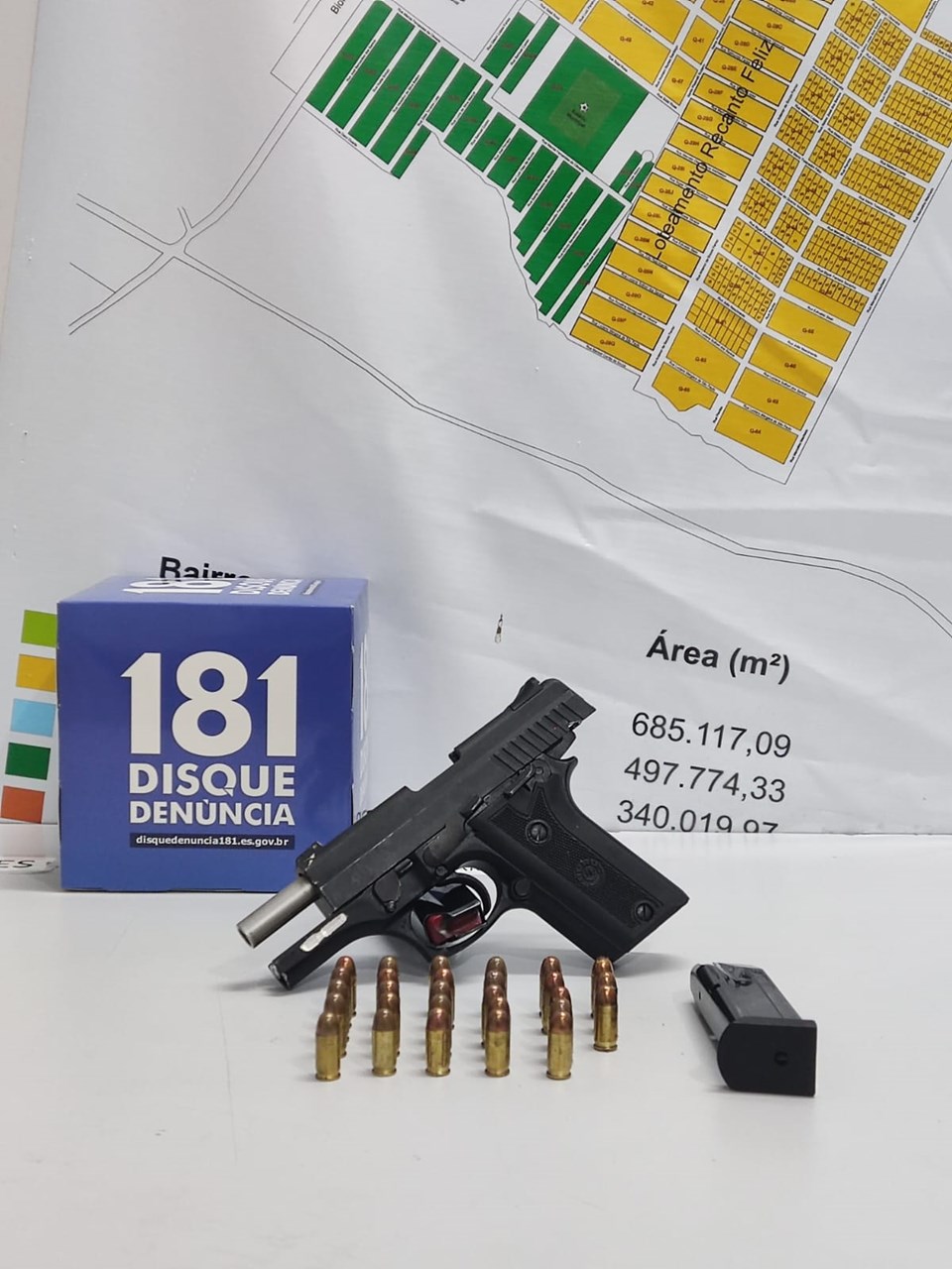 Durante a entrada na casa, o indivíduo jogou pela janela uma pistola calibre .380 e um carregador, ação flagrada pelos policiais. Ao tentar resistir à prisão, ele e a companheira, uma mulher de 20 anos, foram contidos.