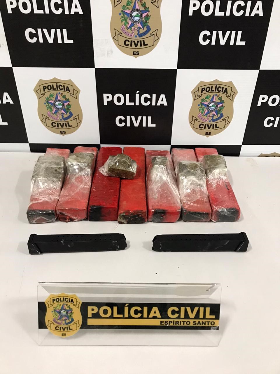 Policiais civis do Departamento Especializado de Narcóticos (Denarc) prenderam em flagrante, na noite dessa terça-feira (05), um jovem de 26 anos, transportando, aproximadamente, sete quilos de maconha e dois carregadores de pistola estendidos. A prisão ocorreu em um estacionamento do bairro Nossa Senhora da Penha, em Vila Velha.