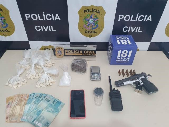 De acordo com o titular da Denarc de Cachoeiro de Itapemirim, delegado Felipe Vivas, a ação é fruto de um trabalho comprometido da Denarc de Cachoeiro de Itapemirim para coibir a prática do tráfico de drogas no município. “Durante o cumprimento dos mandados judiciais, apreendemos 86 porções de substância similar à cocaína, meio tablete de substância similar à maconha, uma pistola de origem argentina calibre. 9 mm, 14 munições de mesmo calibre, um aparelho de celular, duas balanças, rádio comunicador, um veículo e R$ 2.330,00 em espécie”, relatou.