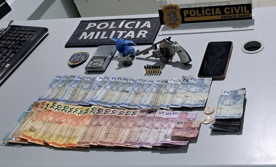 Durante as buscas, foram encontrados um revólver calibre .22 municiado, sete munições intactas do mesmo calibre, R$ 613,00 em espécie, 8 gramas de maconha, uma balança de precisão, uma tesoura e um canivete. Todo o material apreendido, juntamente com o suspeito, foi encaminhado à Delegacia de Polícia de Ecoporanga para a realização dos procedimentos de praxe.