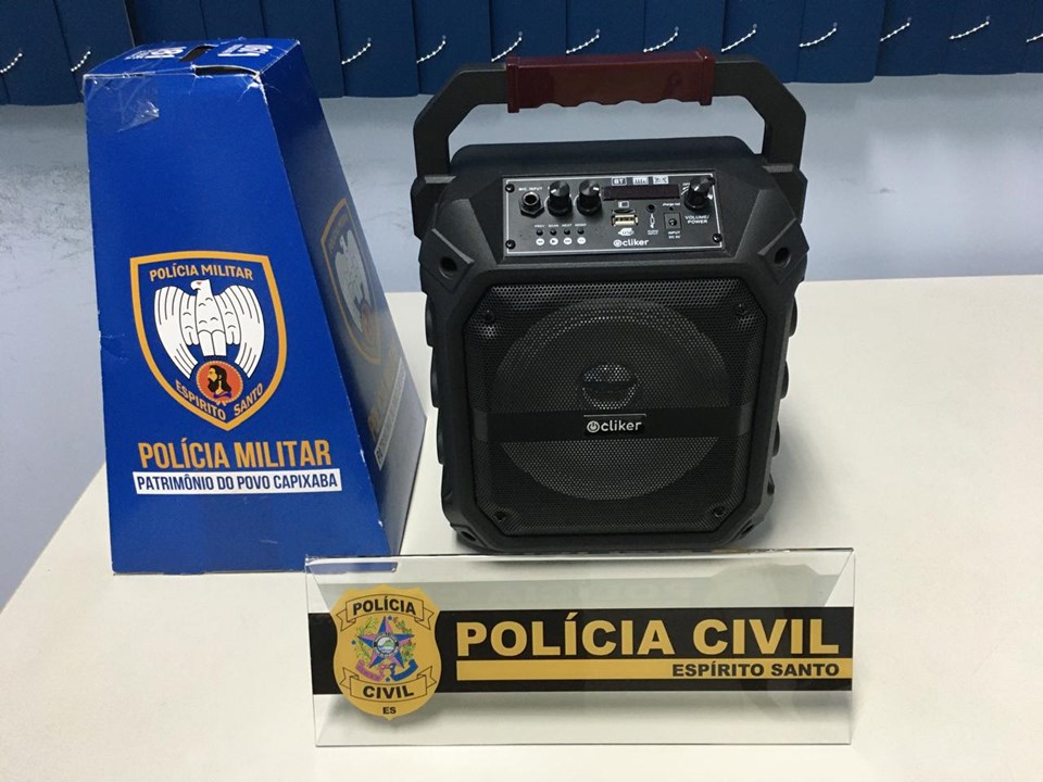 Com o apoio da Polícia Militar do Espírito Santo (PMES), foram realizadas diligências que resultaram na localização do suspeito em uma casa abandonada. A caixa de som furtada foi encontrada em posse de uma mulher, em uma residência ao lado.