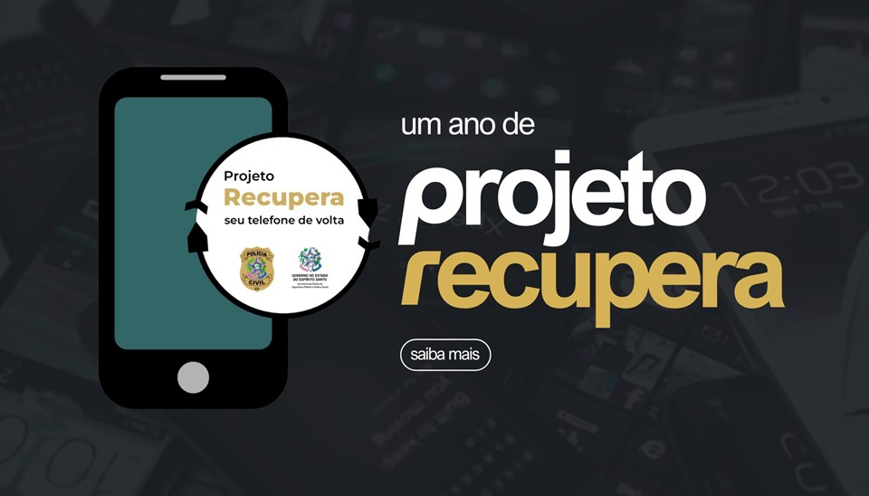 O Governo do Estado, por meio da Secretaria da Segurança Pública e Defesa Social (Sesp) e a Polícia Civil do Espírito Santo (PCES), celebra, neste mês de julho, o primeiro ano de funcionamento do Projeto Recupera, criado para localizar, recuperar e restituir aparelhos celulares roubados e furtados em todo o Estado.