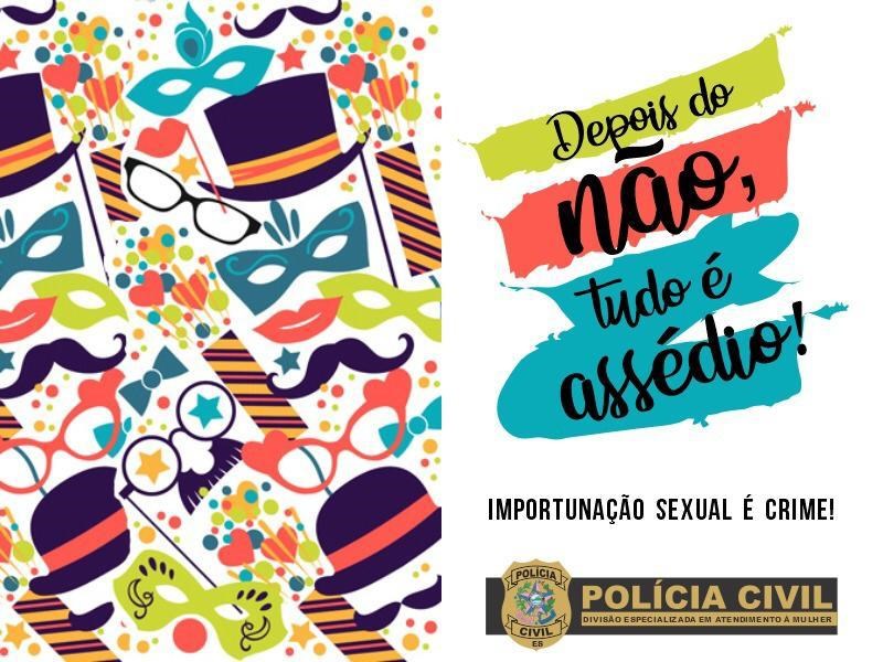 “Não é Não!” Essa é uma das frases que vão marcar o Carnaval deste ano. Após pouco mais de um ano da tipificação do crime de importunação sexual, muitas mulheres ainda tem dúvidas de como proceder nos casos de assédio sexual que aumentam muito nessa época por causa das grandes aglomerações como nos bloquinhos de carnaval, shows e festas.