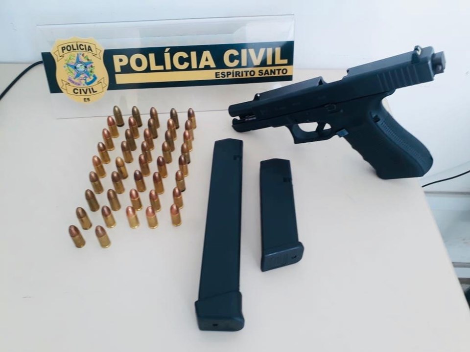 Segundo o delegado, no momento da abordagem, os policiais questionaram o suspeito sobre a existência de materiais ilícitos no local e ele confessou. “Os policiais realizaram buscas pela casa e encontraram uma pistola Glock de calibre 9mm, mesma arma utilizada pela Polícia Civil (PCES), além de 42 munições de mesmo calibre, dois carregadores, sendo que um deles era alongado”, detalhou Sandi Mori.