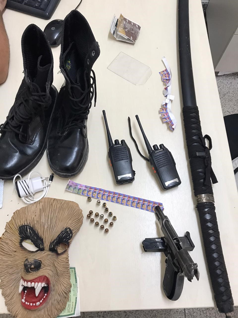 O delegado acrescentou que com J.S.L. foi apreendida uma máscara que o detido usava para esconder o rosto, além de rádios transmissores, uma pistola com munições e uma arma branca.